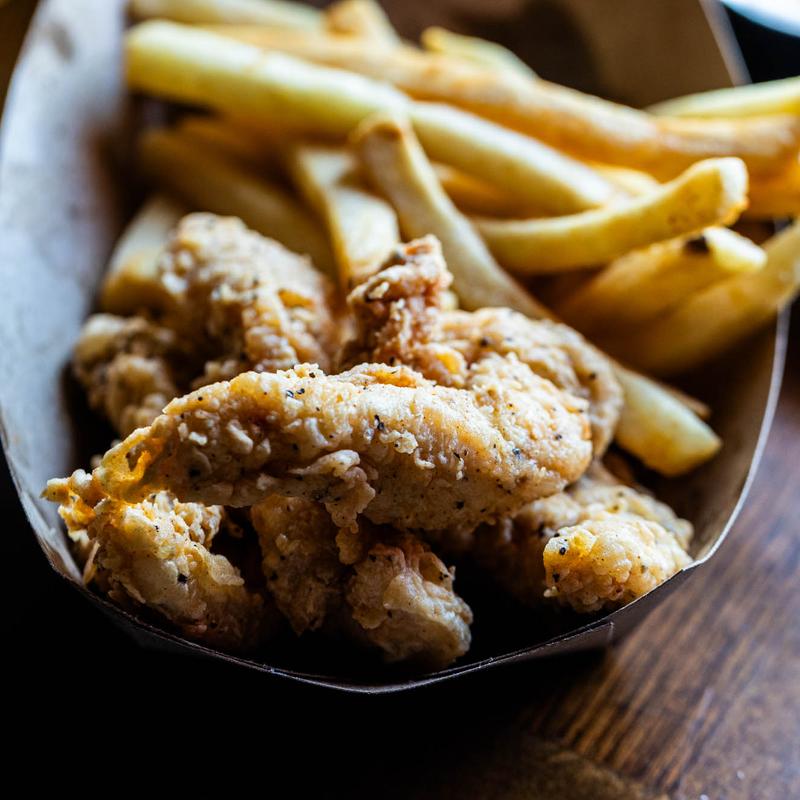Four hand-breaded chicken tenders fried to perfection, served with your choice of ranch or cream gravy.